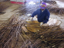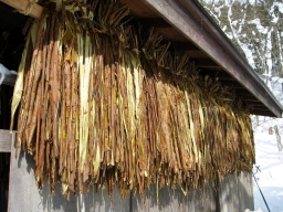 はぎ取った皮を黒皮といい、小束にして1週間から10日間ほど乾燥させます。(写真)