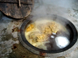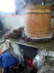 束ねた楮をさらに7束をひとまとめにして、2~3時間釜でふかします。