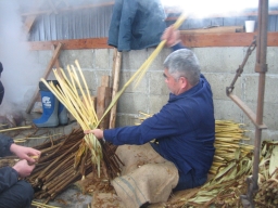 刈り取った楮は、約80センチぐらいの長さに切りそろえ、これを25キログラム程度の重さに束ねておきます。