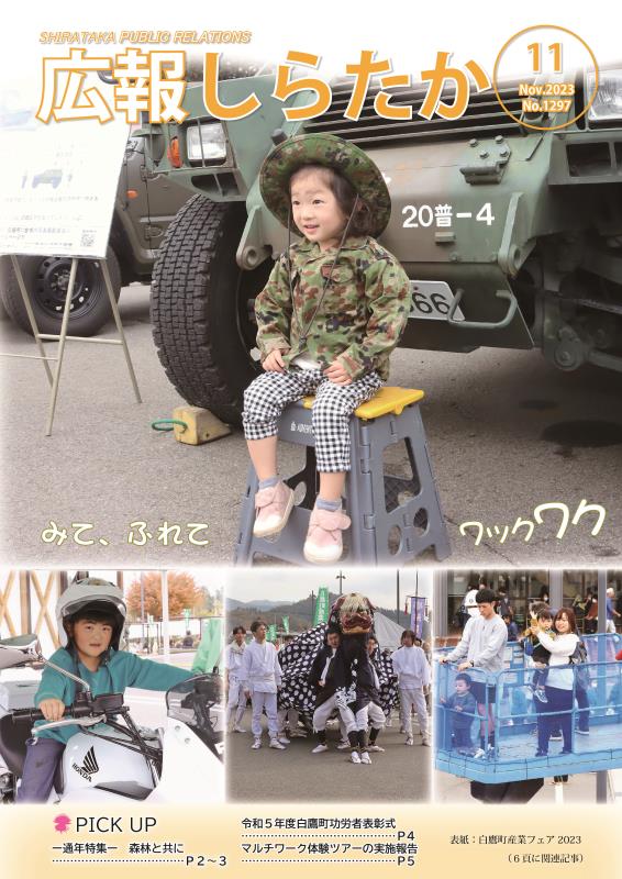 P2-3 令和5年度二十歳のつどい(8,793KB) P4-5 【通年特集】森林と共に(第8回) (1,824KB) P6-7 第46回白鷹鮎まつり(25,192KB) P8-9 まちのニュース(2,010KB) P10-11 町からのお知らせ(1)(435KB) P12-13 町からのお知らせ(2)(327KB) P14-15 令和5年度元気ニコニコ健康月間、国民健康保険だより(424KB) P16-17 新入園児、転園希望児を募集します(587KB) P18-19 あゆみしる~みんなでつむぐ物語~、町報川柳、ちょうりじょうゆうびん、荒高掲示板(1,080KB) P20-21 あんぜん×あんしん、見守り支え合い(708KB) P22-23 図書館に行こう、中央公民館展示案内、8月の「町長交際費」と「町長の主な動静」(568KB) P24-25 情報アラカルト(1)(569KB) P26-27 情報アラカルト(2)(485KB) P28-29 10月の子育てページ、10月の健康カレンダー(297KB) P30-31 あゆーむ通信、ROKU、戸籍の窓(803KB) P32 協力隊通信、白鷹町環境フェア(1,511KB)