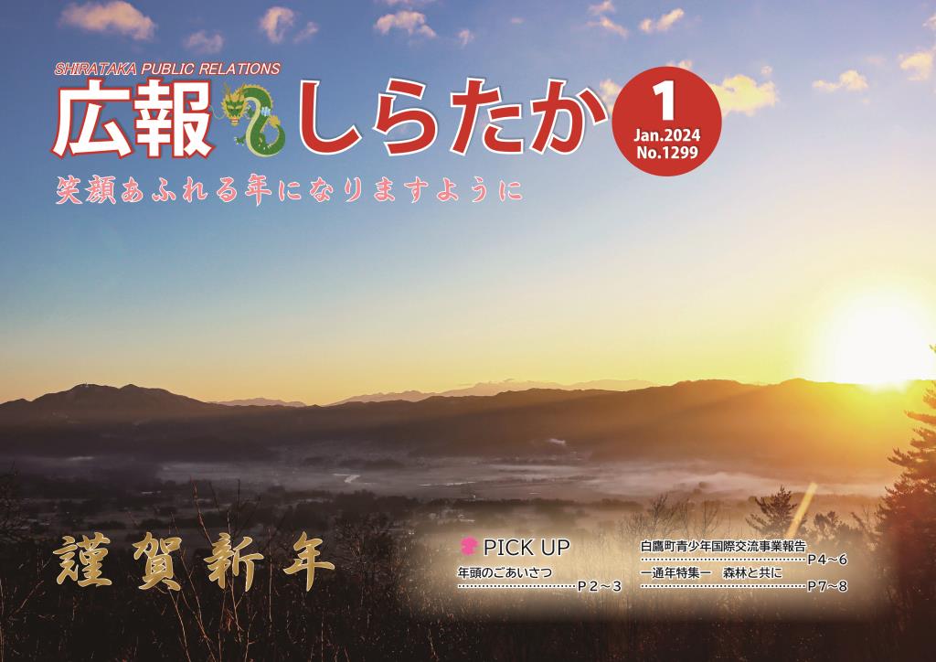 P2-3 【通年特集】森林と共に(第8回)(1178KB) P4-5 まちのニュース (547KB) P6-7 町からのお知らせ(1)(326KB) P8-9 町からのお知らせ(2)(290KB) P10-11 白鷹都市計画用途地域の見直しについて、原油価格・電気料金等高騰に対する支援事業(2862KB) P12-13 パブリックコメントを募集します(224KB) P14-15 税務出納課からのお知らせ(452KB) P16-17 図書館に行こう、各種表彰(481KB) P18-19 あゆみしる~みんなでつむぐ物語~、町報川柳、ちょうりじょうゆうびん、荒高掲示板(1036KB) P20-21 元気ニコニコしらたか21、中央公民館展示案内、11月の「町長交際費」と「町長の主な動静」(497KB) P22-23 見守り支え合い、白鷹山情報、情報アラカルト(1)(688KB) P24-25 情報アラカルト(2)(965KB) P26-27 1月の子育てページ、1月の健康カレンダー(277KB) P28-29 あゆーむ通信、ROKU、戸籍の窓(873KB) P30 協力隊通信、しらたかマルチワーク事業協同組合町内説明会の開催(3036KB)